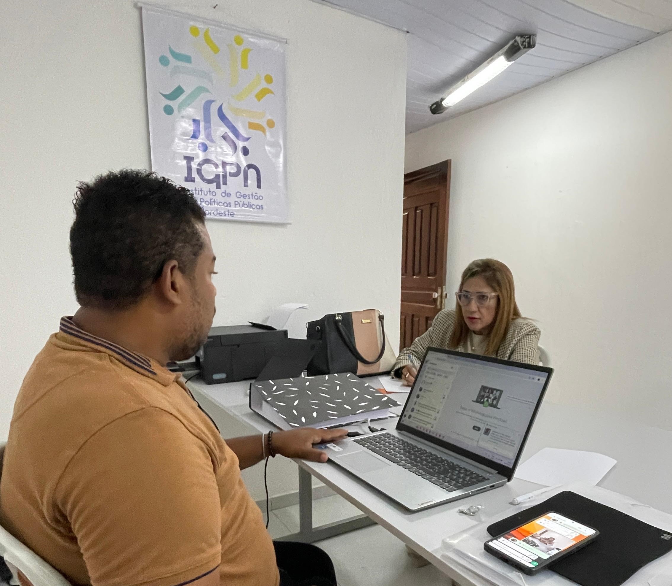 Drª. Edjane Monteiro, Presidente do Instituto Rede Vhida e o coordenador administrativo do projeto PREAMAR Israel Vicente de Lima, durante visita técnica à filial do IGPN em Ipojuca-PE